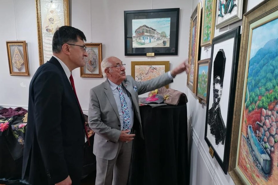 Şehrimizin köklü sanat mirasını ve kültürel birikimini yansıtan sergide yer alan çini, seramik ve el sanatları eserlerini tek tek inceleyen Belediye Başkanı Eyüp Kahveci, çalışmalar hakkında bilgi aldı.